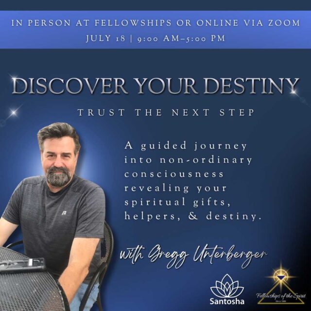Join psychotherapist Gregg Unterberger for a workshop that's all about you and what's next on your spiritual journey! In this exciting event, you'll embrace the Discover Your Destiny process, a unique experiential modality that has helped thousands of ordinary people across the nation glimpse the future of their spiritual path.
